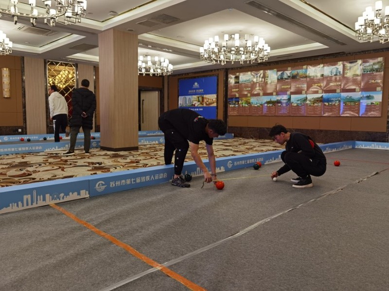 苏州市第七届残疾人运动会——特奥硬地滚球比赛于今年12月7日至8日在苏州市举行,本次赛事由苏州市残疾人联合会主办,苏州市残疾人活动中心、苏州市智力残疾人亲友会、苏州市残疾人体育协会承办,苏州市各区、县共9支残联代表队的男女运动员、教练员、领队近一百人参加。