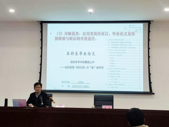 12月16日下午,语言学院邀请江苏第二师范学院文学院副院长赵敬鹏副教授为该院汉语言文学专业师生开展主题为“毕业论文与汉语言文学专业人才培养”的讲座。讲座由中文系主任李鸣老师主持,汉语言文学专业全体教师及2017级、2018级部分学生到场聆听。