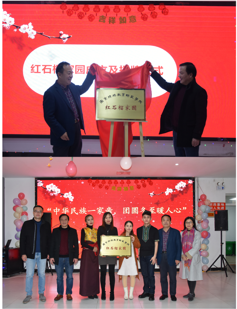随后举行了揭牌仪式,少数民族专职辅导员努尔比耶姆·麦麦提老师向大家介绍“南京特师红石榴家园”筹建的情况,张金福部长和章小军部长为“南京特师红石榴家园”揭幕。