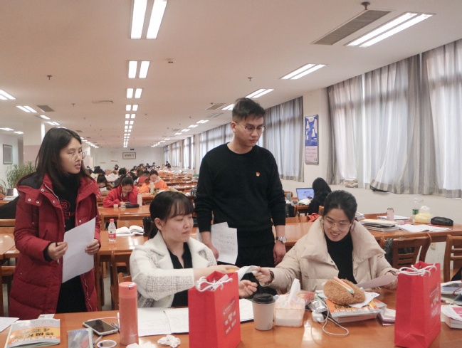 为鼓舞我校学子考研士气,舒缓备考压力,以最佳状态迎接考试。12月24日我校学工处举办“‘研’途送温暖,考研一定‘橙’”主题党日活动。校党委副书记王立新、学工处处长章小军携机关第一党总支第二党支部全体党员老师分别在水上报告厅考研自习室及图书馆开展考研送温暖活动。