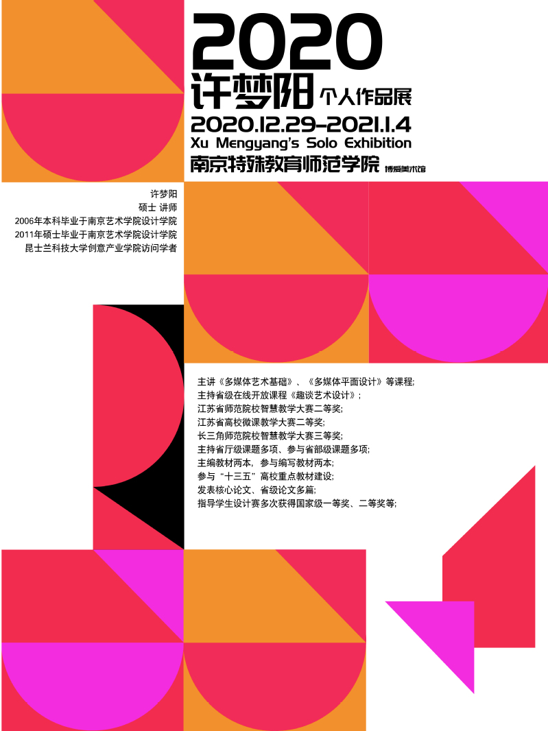 展览作品充分体现了许梦阳老师近年来的设计实践研究成果,具有较高的艺术性和创新性,反映了她在审美反思中领悟艺术设计的本质;从心理感知的角度探讨新的设计形式;从媒介技术的角度展现出设计的力量;在数字时代的当下,探讨设计的转型与设计美的新范式。