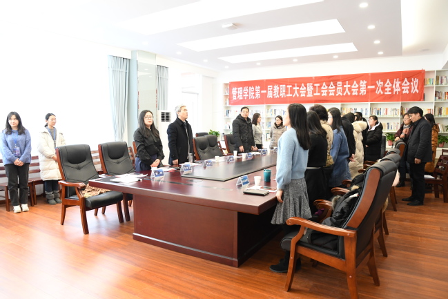 管理学院第一届教职工大会暨工会会员大会第一次全体会议在国际歌声中胜利闭幕。(文、图/彭琳)