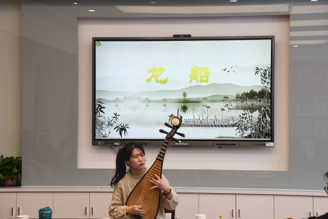 行云流水的指法,欢快激昂的旋律,1801班原溯同学弹奏琵琶曲《龙船》,一气呵成,余音绕梁,赢得了现场师生的阵阵掌声。20级李傲然等3位同学的自弹自唱、能泽宇同学的诗朗诵、王明珠同学的独唱、谈诗漪等3位同学的歌舞表演以丰富的表现力、出众的渲染力展现着新一代管院学生的自信与阳光。
