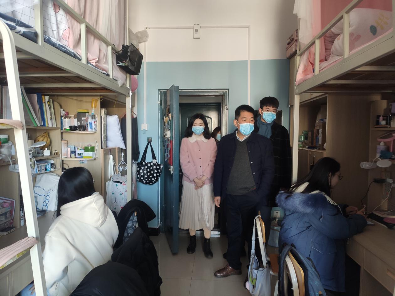 丁祖保副书记在学生宿舍与同学们强调:一是外出要注意疫情防控,不聚集、不扎堆,戴好口罩;二是要学习防火防盗知识,不点蜡烛、不使用明火等;三是要注意用电安全,不允许使用大功率电器;四是天气转冷需注意身体保暖,尽量少出门,预防感冒;对于即将到来的期末考,要调整心态,积极认真迎考。