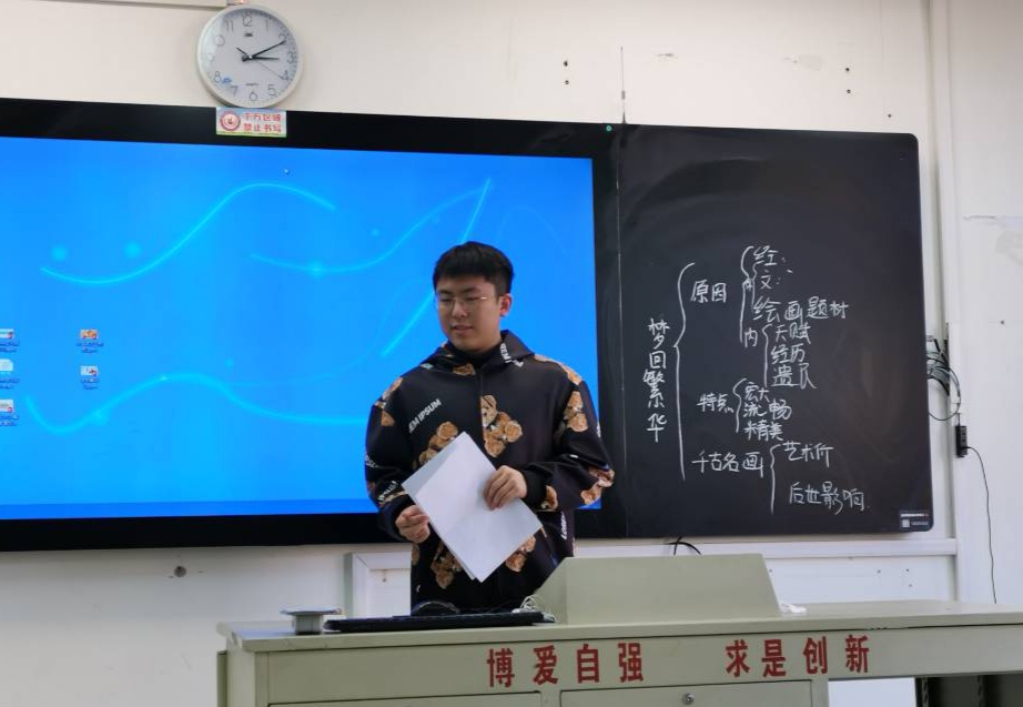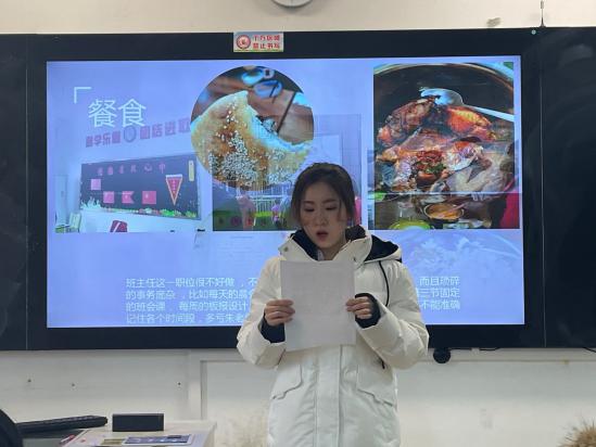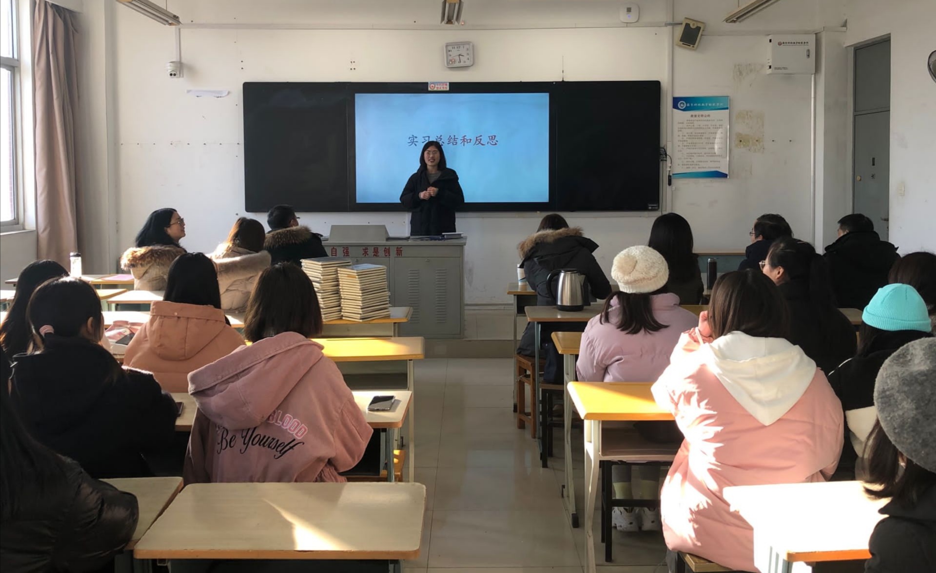 四位实习生展示师范生技能。1701班的潘欣怡、姜文燕演唱歌曲《Dancing with your ghost》,体现了两位同学的舞台艺术实践能力及音乐表现力。大家共同欣赏了1701班高育淇同学的精彩实习小故事视频。1703班吕伯承发表了题为《做学生喜爱的老师》的演讲,他认为作为教师应该像磁铁一样用人格魅力去吸引学生,严中有爱、言辞相济,更应该提高自己的职业素质,近距离地接近学生,耐心聆听学生的心声,逐步取得学生的信任,成为学生的知心朋友。