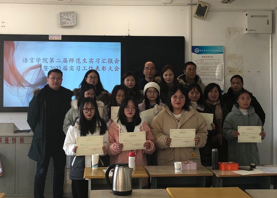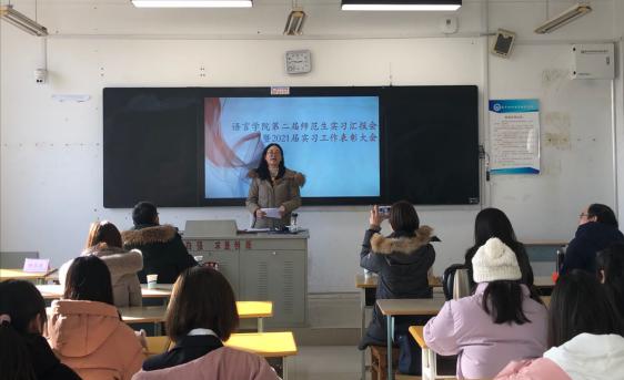 日前,语言学院举办第二届师范生实习汇报会暨2021届实习表彰大会。参加本次活动的有南京市锁金村第一小学张福升副校长、南京市十三中锁金分校蒋国银主任、语言学院党政领导们、各系主任、17级班主任、辅导员、17级全体实习指导教师和17级毕业班全体学生。