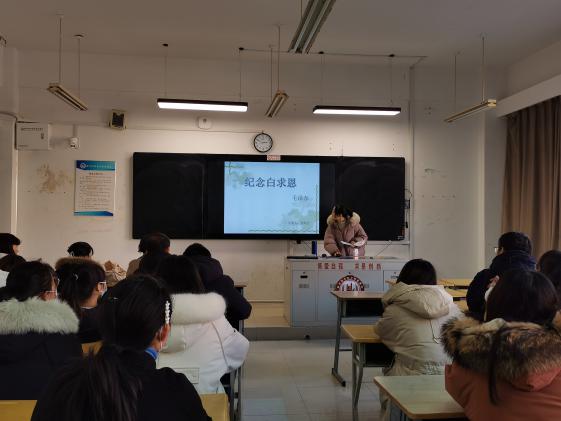 汇报会现场,1701班岳建祎、1702班石艺凝和1703班李姝芸向同学们分别展示了《The Gift of Magi》《King’s new clothes》和《纪念白求恩》的教学微课。在精彩的教学微课展示之后,张福升副校长和蒋国银主任对微课进行分析点评,肯定了实习生的教姿教态、内容充实,重点突出,并提出中肯的建议:作为师范生要多读书,严肃对待编制考试;作为教师语调要注意抑扬顿挫,注意鼓励学生。