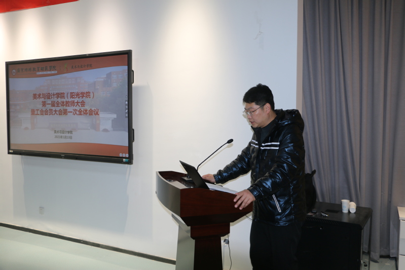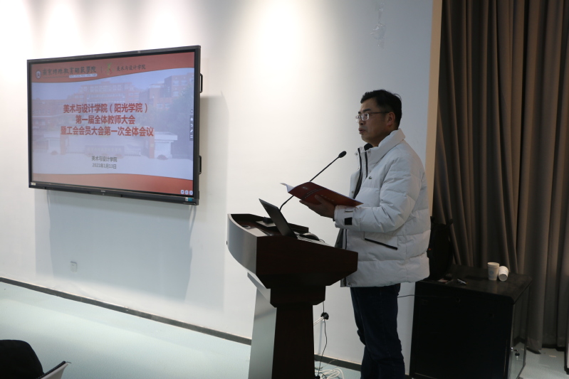 副院长刘学作了《美术与设计学院(阳光学院)高质量发展业绩考核办法(征求意见稿)》的说明。学院分工会主席丁宝龙作了题为“团结奋进、砥砺前行,为学校事业高质量发展作出新贡献”的工作报告。