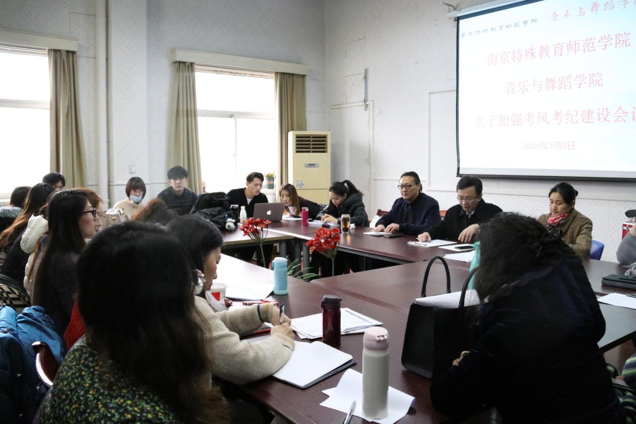 1月6日下午,音乐与舞蹈学院召开教学常规检查汇报与考风考纪建设会议。会议由音乐与舞蹈学院党总支书记杨荔主持,全体教职员工参会。