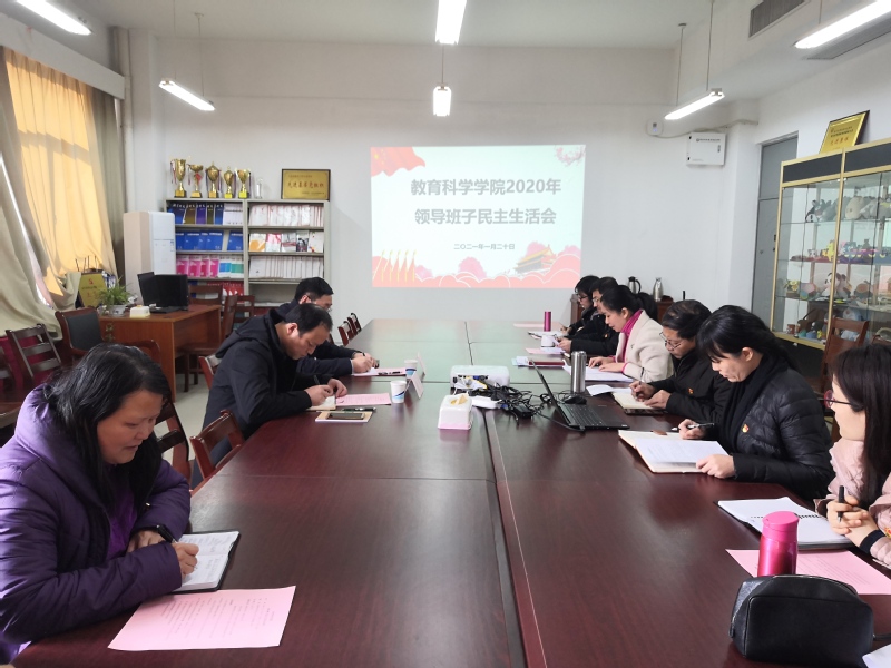 1月20日下午,教育科学学院党总支召开领导班子民主生活会。校党委常委、副校长陈克军和校纪委委员、信息化建设与管理中心主任胡博到会督导。会议由教育科学学院党总支书记吴月华主持,学院党总支全体委员、副处级以上干部参加。