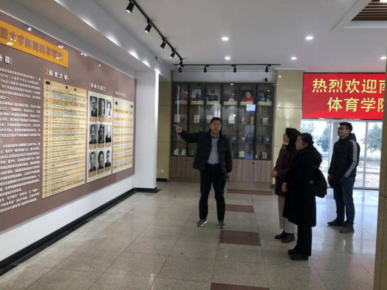 会前,储志东院长带领我院一行人参观了学院大厅,观看学院办学宣传片并详细介绍了南师大体科院的发展历程、师资建设、学科平台建设、师生获奖等情况。