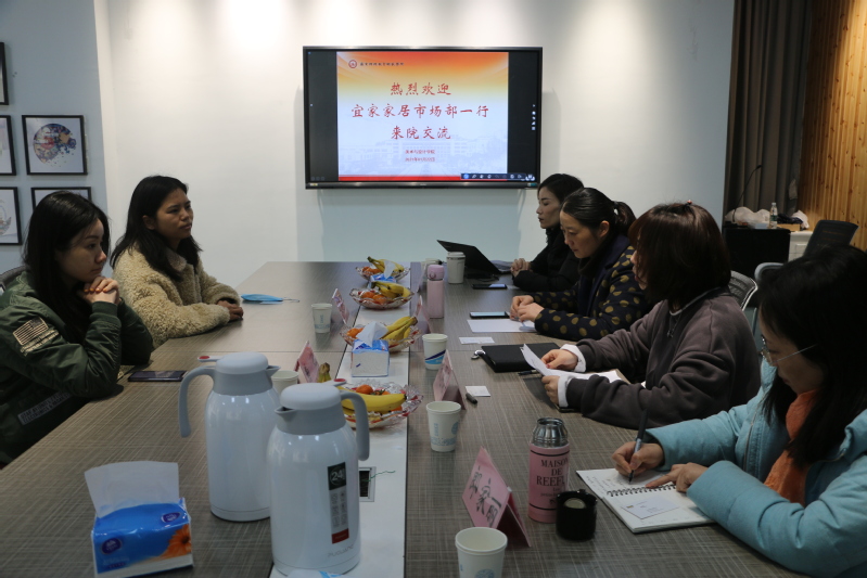 1月22日上午,南京宜家家居市场部胡志花经理带领公共关系专员曹烨一行来我校美术与设计学院访问交流,学院副院长刘学、视觉传达设计系主任李艳、服装与服饰设计系主任郎家丽及学工办副主任朱思思参加交流会。