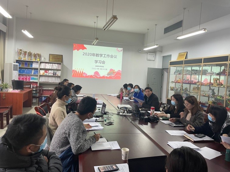 1月22日下午,学校2020年度教学工作会议如期举行,教育科学学院吴月华书记带领全体教职员工在学院会议室线上观摩,聚精会神仔细聆听。