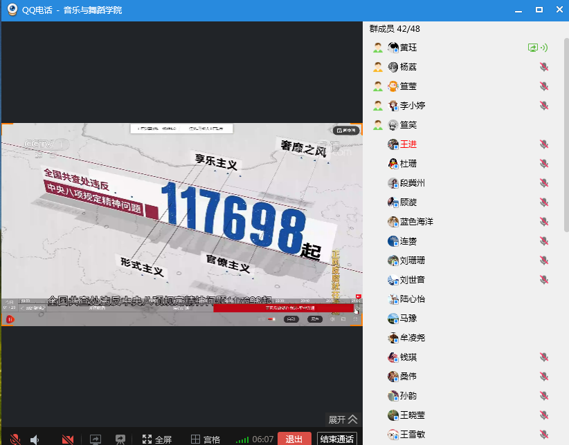 音乐与舞蹈学院党总支于1月21日至24日每晚八点,通过网络会议的方式组织全体教职工集中学习电视专题片《正风反腐就在身边》。