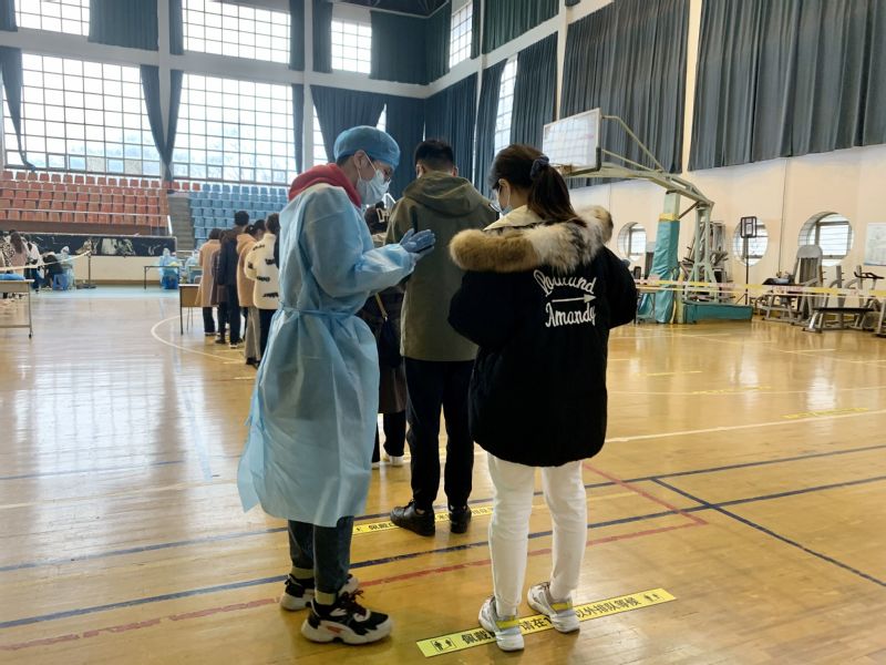 在志愿者和全体同学们的共同努力下,美术与设计学院的核酸检测工作高效有序地完成。(朱思思 戚思敏 王羽淇)