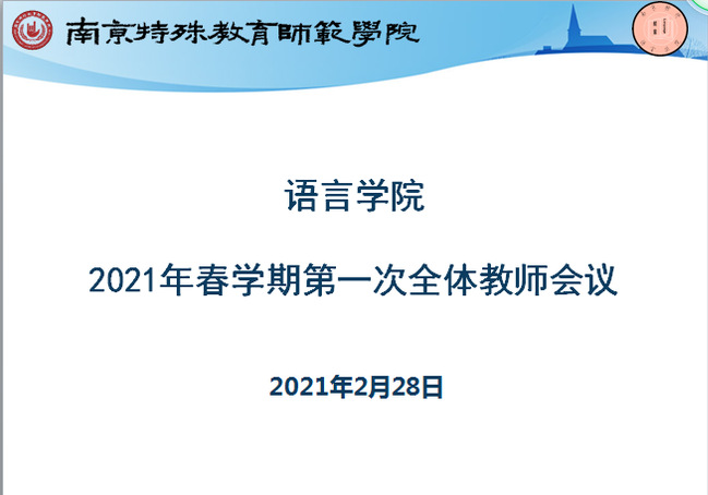 2月28日上午,为统一思想、明确目标,确保新学期工作平稳有序进行,语言学院召开2021年春学期第一次全体教师会议。学院党政班子和全体教师出席会议,会议由院长许巧仙主持。