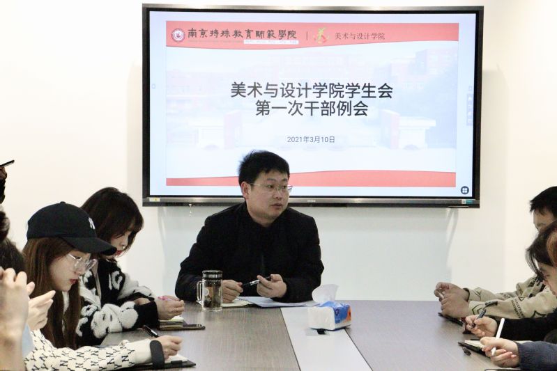 3月10日下午,美术与设计学院召开2021年春学期第一次学生会干部例会。学院党总支副书记丁宝龙、团总支副书记朱思思出席会议,学生会全体学生干部参加。