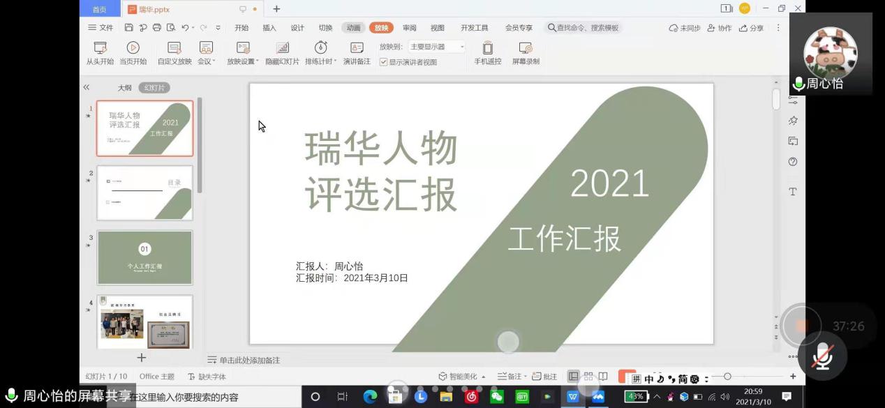 为宣传表彰先进学生典型,营造争先创优、比学赶超的良好氛围,语言学院于3月中旬在线上举行“瑞华大学生年度人物”风采展评汇报会。语言学院副院长徐琴芳,班主任代表刘卿、徐中锋、杨丹珂、钱星宇、胡岳以及该院2017、2018、2019级学生参加,汇报会由学工办主任郑丹丹主持。