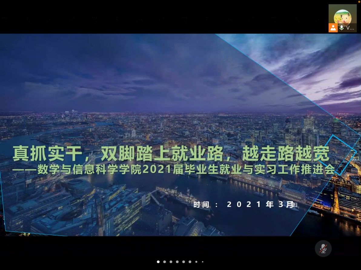 为更好地促进2021届毕业生就业工作,3月17日晚,数学与信息科学学院在线上开展了教育技术学专业就业与实习工作促进会。会议由辅导员樊琬主持,院长胡作进、副院长张居晓以及2021届毕业班全体同学参加。