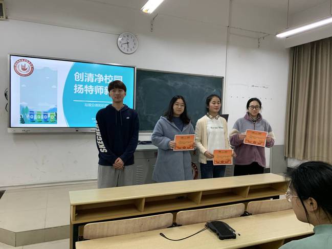 活动期间,参赛同学们在学生会社团部的组织下有条不紊的进行试卷作答,从试卷批改中进一步了解到了垃圾分类在环境优化中的重要作用,以及政策贯彻施行过程中所遇到的困难。最终经评委们细致公正的批阅下,尹一帆同学荣获知识竞赛一等奖,张怡、沈梓怡两位同学荣获二等奖,徐馨月、唐丽媛、刘晓源三位同学荣获三等奖,马超越、申雪芳、张平宛君三位同学荣获优秀奖。