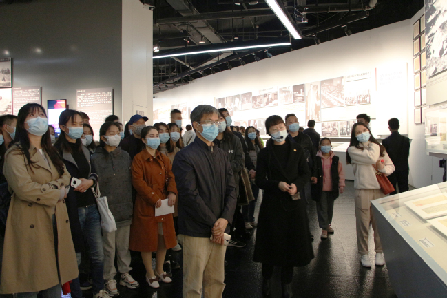 在讲解员的带领下,师生们首先来到纪念馆展览区,穿过沉重悲怆的历史铁证,直面这一段惨痛的民族记忆。这里的累累白骨,控诉着侵华日军在中华大地上犯下的屠杀平民的滔天罪恶;一件件实物和图文资料,记录着手无寸铁的几十万同胞家破人亡、妻离子散的悲惨遭遇。铁的事实,血的记忆,激发了师生们的爱国情怀,更让大家深感今天的和平生活来之不易,倍足珍惜。之后,师生们走进抗战胜利纪念馆,追随着历史车轮前进的足迹,看到的听到的是中国共产党领导全国人民浴血奋战,赶走日本侵略者的丰功伟绩,心中久久回荡的是“正义必胜,和平必胜,人民必胜”的真理之声。
