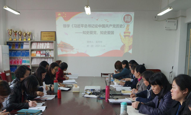 为深入学习贯彻习近平总书记在党史教育动员大会上的重要讲话和校党史学习教育动员会精神,3月24日下午,教育科学学院党总支书记吴月华带领学院全体教职工集体研学习近平总书记《论中国共产党历史》篇目三《知史爱党,知史爱国》。