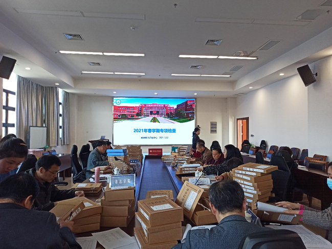 为迎接本科教学工作合格评估,深入贯彻“以评促建、以评促改、以评促管”的方针,教育教学评估中心于3月22日开展了试卷专项检查工作,全体校督导和教育教学评估中心人员参加了此次检查。