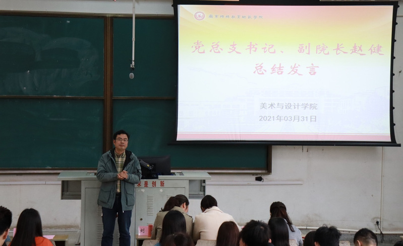 学院党总支书记赵健为大会总结发言,他指出学风对于在校大学生而言,主要是养成良好的学习习惯,掌握系统性的学习方法,营造良好的学习氛围。赵书记进一步强调专业技能的训练是检验专业是否合格的渠道,同学们要充分发挥自己的主观能动性,不断超越自我,在学习中紧扣专业所学,通过“泡”图书馆或者听学术讲座的方式不断提高自身专业素质。