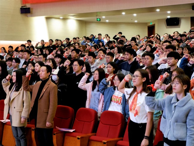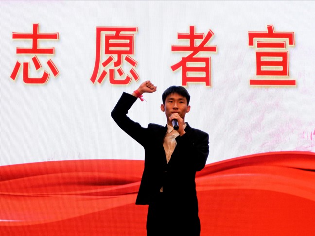 在团队分享环节,数学与信息科学学院“绑金朵梅”少数民族公益团队负责人斯求卓玛、“小桔灯”志愿者团队代表刘露露和学校“暖阳公益”代表李志蕊,分别分享了在党组织的关心关怀下,投身祖国各地开展助残、助学、助教的志愿故事。全体参会人员在学院青年志愿者协会负责人的带领下,共同宣读“志愿者誓词”。