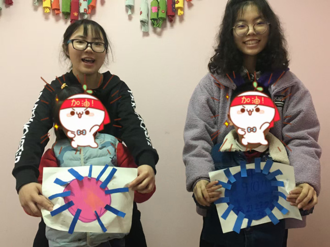 学生志愿者带领残疾儿童开展兴趣手工游戏