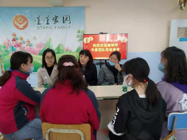 志愿服务第一环节,由该支部的党员教师通过座谈和现场指导的方式,为康复机构的教师和家长提供专业指导。老师们与机构教师和家长面对面交流,了解他们目前遇到的困惑,有针对性的进行专项的指导和答疑,并就如何缓解儿童的情绪、家园如何有效合作等内容进行了深入探讨。