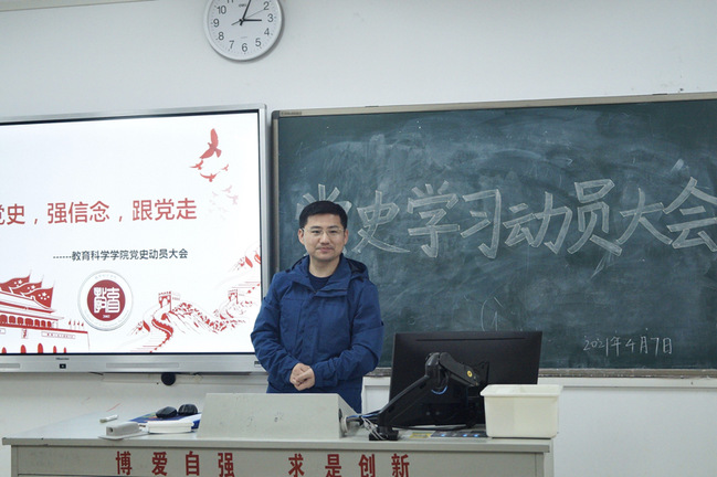 4月7日上午,教育科学学院召开学生党史学习教育动员大会。学院党总支副书记吴兴出席会议,学工办负责人李国敏、学生党支部书记汪亮巧及全体辅导员和各班班长和团支部书记参加会议。会议由李维翔老师主持。