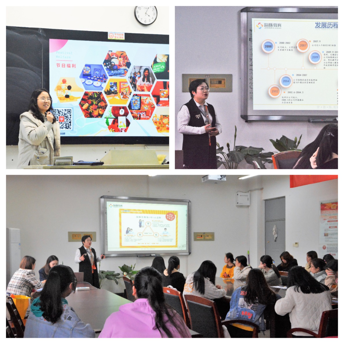 南京海豚教育、南京学而思教育机构招聘负责人给同学们详细介绍了企业薪资福利、发展前景、公司规模等方面内容,有助于毕业生更加全面、细致地了解两家机构的各项情况,让学生们对现阶段就业形势有了更全面的认识。30余名同学在招聘会上投递了自己的求职简历,登记了求职意向。