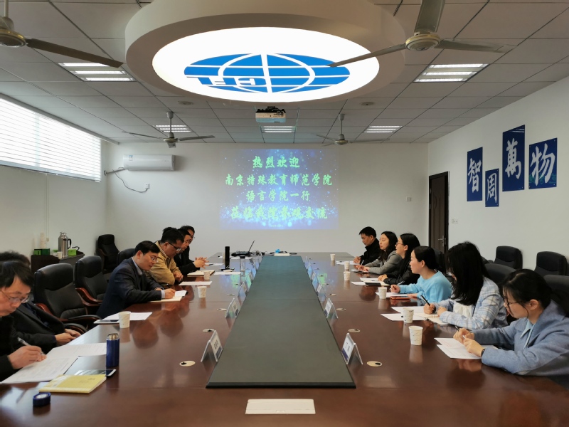南京航空航天大学外国语学院院长范祥涛、副院长徐以中、副院长姜福礼等相关人员热情接待。徐琴芳副院长介绍了我校的办学特色、语言学院英语专业培养目标、基本发展路线以及实验室搭建的初步计划,表示愿多学习借鉴南京航天航空大学外国语学院在实验室搭建与完善方面的宝贵经验。范祥涛院长介绍了外国语学院学科建设、专业建设以及办学规模的基本情况和近年来在学术研究基础条件建设,特别是建设与完善专业实验室和大学英语教学平台等实验室方面取得的进步与经验。南京航天航空大学外国语学院英语系主任王伟详细介绍了“口语口译实训中心”的搭建规模以及其在教学中的实践应用过程与成果,并表示希望双方能继续保持交流,进一步拓宽思路,在“手语口译”“口语手译”等方面有所突破与创新。