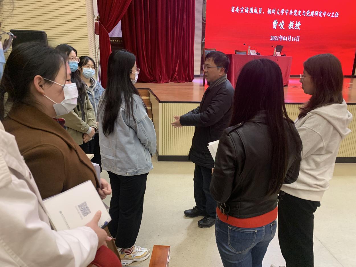 宣讲结束后,学生党支部的党员学生围绕报告会内容和党史学习体会与曹峻教授开展了面对面互动交流。同学们与曹峻教授交流党史学习教育中遇到的问题,曹教授认真聆听并耐心解答。