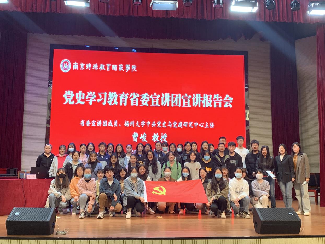 4月14日下午,特殊教育学院学生党支部组织支部全体师生党员参加党史学习教育省委宣讲团进我校举行的宣讲报告会,聆听了省委宣讲团成员、扬州大学中共党史与党建研究中心主任和中共党史学位点负责人曹峻教授的《从党的奋斗历程中汲取前进的智慧和力量》专题报告。