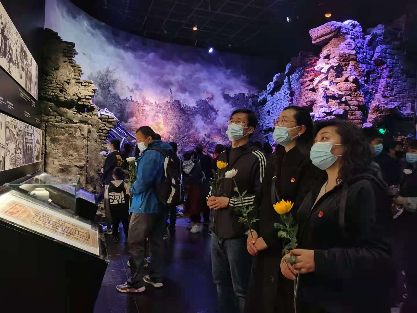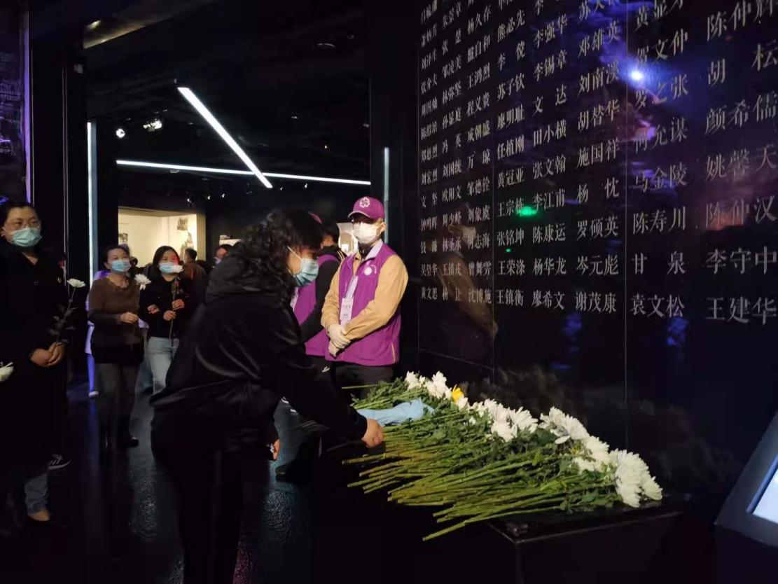 刚走进纪念馆的大门,眼前的塑像仿佛诉说着那段不堪回首的沉痛岁月。跟随讲解员的脚步,我们怀着无比沉重的心情参观了史料馆。通过各类物证、史料、图片以及幸存者的采访视频,师生们回顾着那段惨绝人寰的历史,心情凝重。在祭坛处,师生们井然有序地献上手中的白菊,深深地鞠躬,以表达对死难者的敬重与哀悼。