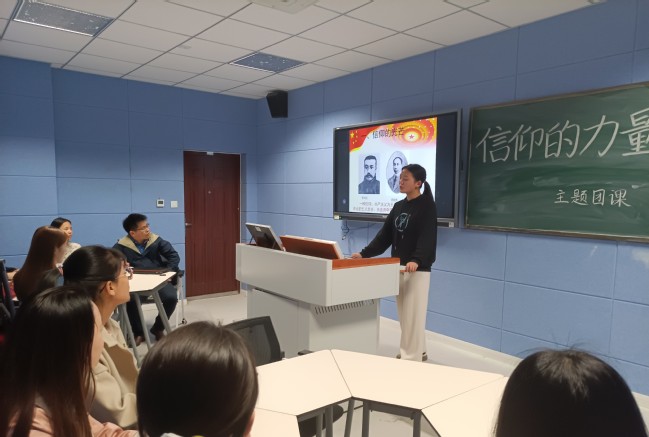 2018PTOT2班团支书袁清同学以“信仰的力量”为主题的团课,课由“信仰的光芒”“真理的味道是甜的”“历史的意义”“做红色文化的传播者”四个部分组成。多名团支书在团课中讲到:作为新时代的大学生应从建立信心,敢于拼搏;树立信念,厚植爱国情怀;坚定信仰,永远跟党走三个方面努力,做红色文化的传播者。