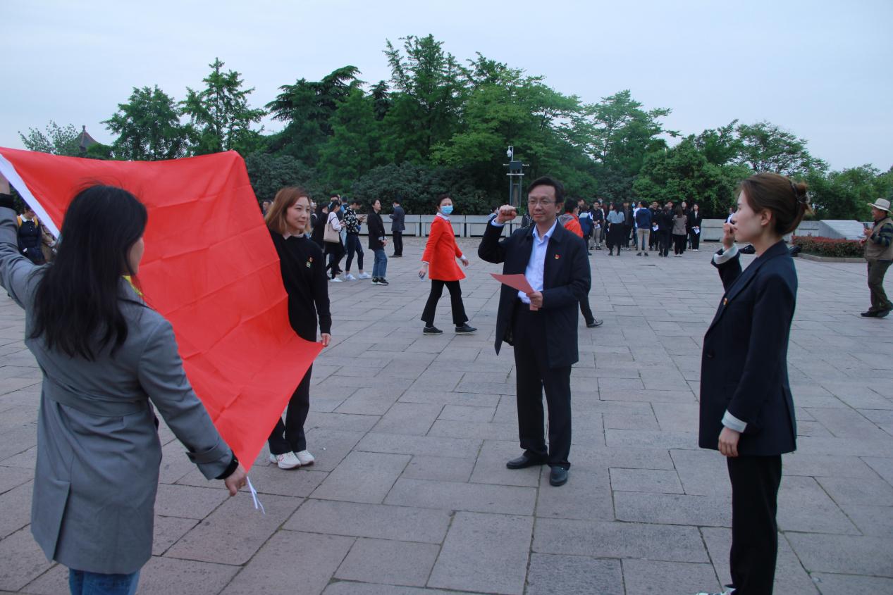 杨荔书记带领全体党员师生在庄严的纪念碑和鲜艳的党旗前重温入党誓词。强烈的仪式感使每位党员接受了一次心灵的洗礼和融入血液的党性再教育。