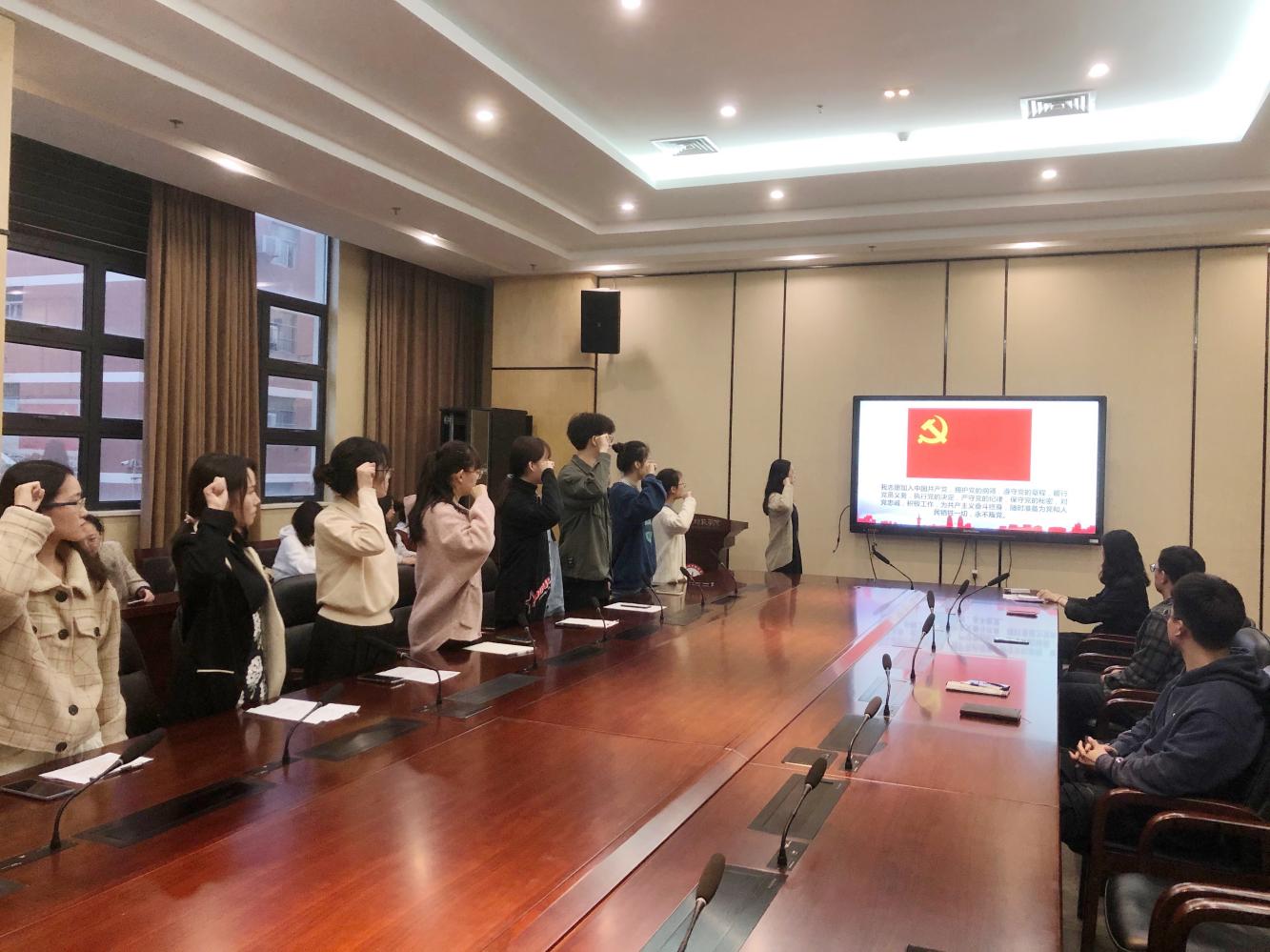 大会最后,在翟玉杨同志的带领下,13名预备党员全体起立,对着党旗进行了庄严的入党宣誓。此次大会,为语言学院学生党支部注入了新鲜血液,进一步扩大了党员队伍,使我们党的事业继往开来,永葆生机活力。相信在党组织的带领下,13位新党员能够坚定政治立场,坚持以实际行动为共产主义奋斗终身。(钱星宇 吴嘉雨)