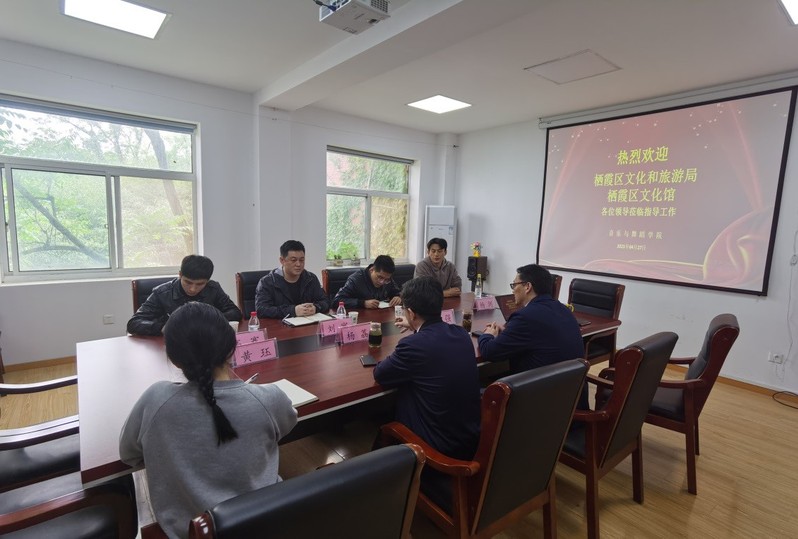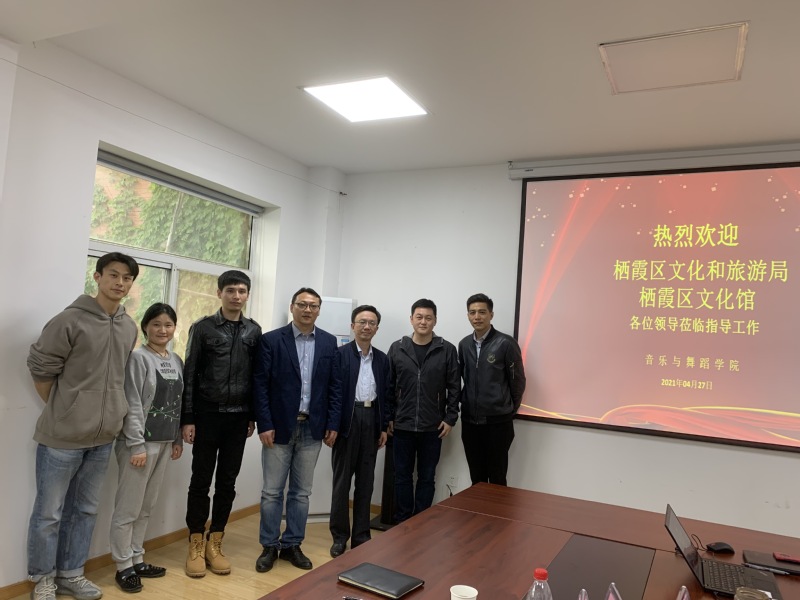 为进一步加强学科专业建设,深化校企合作,促进师生教育教学、科学研究与艺术实践实训项目建设工作的开展。4月27日,栖霞区文化与旅游局主任刘寓,栖霞区文化馆馆长赵君、培训部主任高骞一行莅临音乐与舞蹈学院,双方就学院师生开展校外教学实习、艺术实践实训合作方面进行交流研讨。会议由音乐与舞蹈学院副院长张强主持,学院党总支书记杨荔、副书记黄珏,舞蹈学系主任杨剑等老师参加。