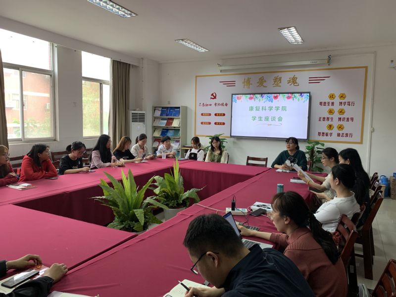 为全面掌握教学运行情况,做好教学管理工作,5月12日下午,康复科学学院先后召开了2021年春学期期中教学检查教师代表座谈会、学生代表座谈会,学院党总支书记吴洪菊、副院长(挂职)夏宝妹、督导组长丁兴以及教师代表、学生代表参加。会议由夏宝妹副院长主持。
