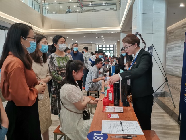 随后,在学院辅导员符昱叶、学生志愿者唐呈的陪同下,吴潇与招聘单位进行了深入交流,介绍了自身的优势条件,详细了解了多家用人单位的需求,并主动投递简历。