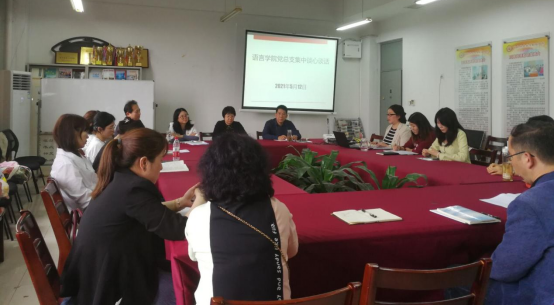 5月12日下午,为深化党史学习教育、贯彻落实习近平总书记在清华大学、广西考察期间的重要讲话精神,语言学院党总支开展党员教师集体谈心谈话活动,了解教师教学、科研、生活方面的动态,帮助教师解决工作和生活中实际困难,聚焦“提高教师生活、工作的品质”,抓整改、求实效。会议由党总支副书记丁祖保主持,语言学院全体党员教师参加。