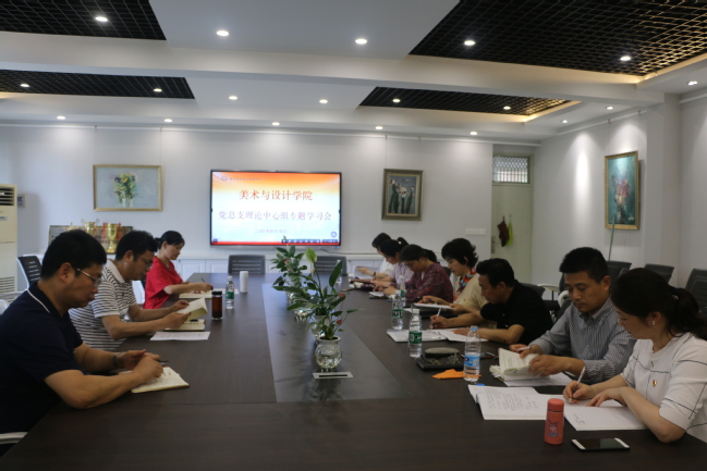 5月28日下午,美术与设计学院召开党总支理论学习中心组专题学习会,会议由学院党总支书记赵健主持,音乐与舞蹈学院党总支副书记黄珏巡学督查。