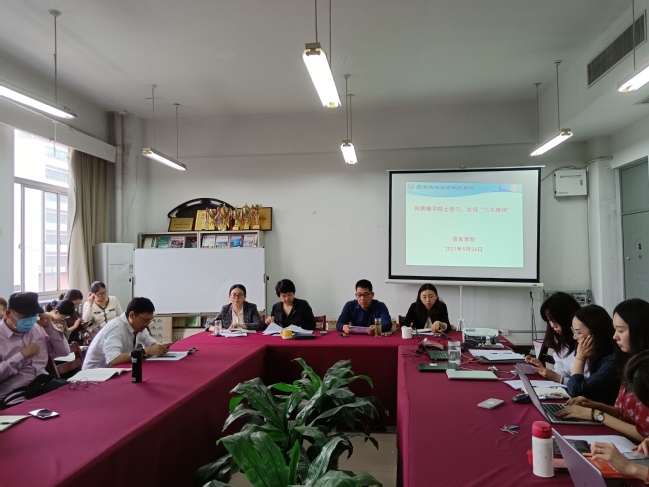 5月26日下午,语言学院积极响应习近平总书记号召,开展“向袁隆平院士学习,发扬‘三牛’精神”的学习会,会议由学院党总支副书记丁祖保主持,学院全体教职工参加。