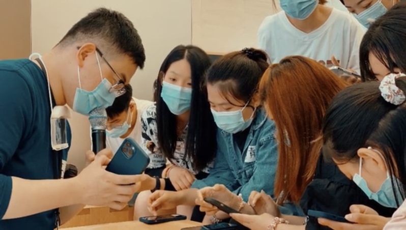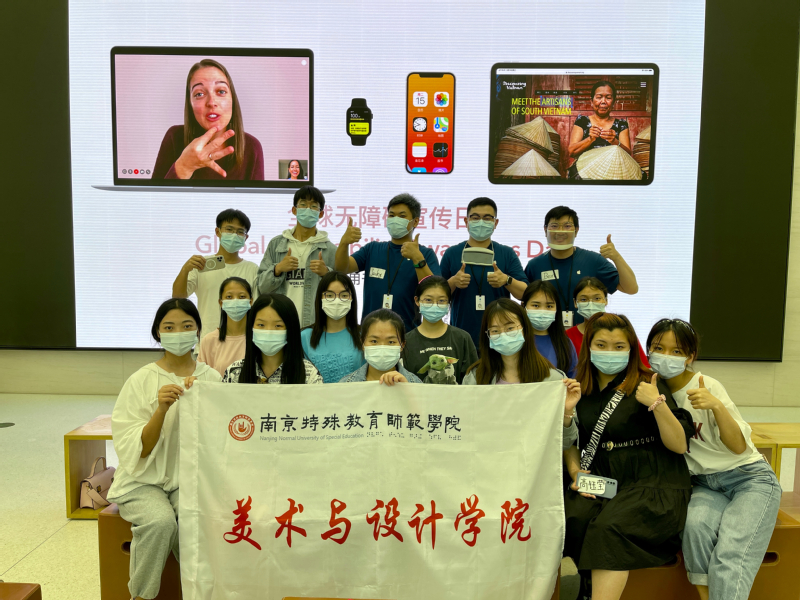 5月26日下午,美术与设计学院的听障大学生志愿者们前往玄武湖Apple零售店开展全球无障碍宣传日主题活动。