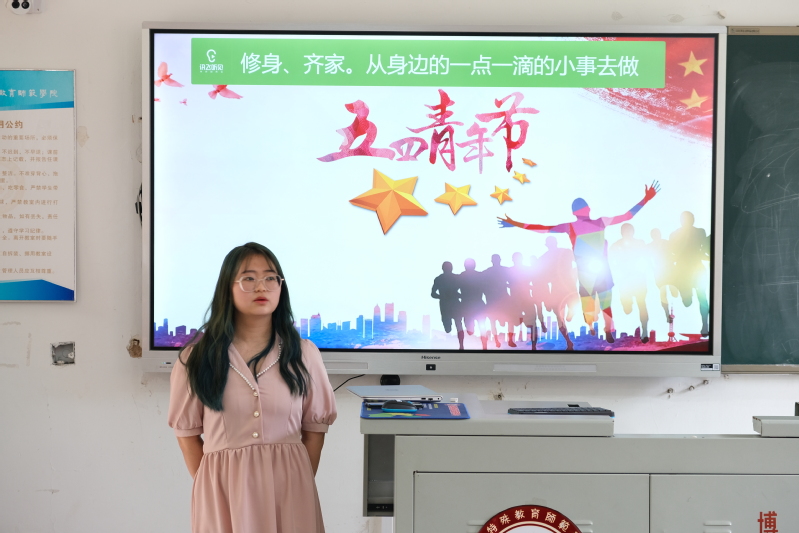 学习会上,廖诗意带领学生党支部成员及入党积极分子围绕“青年力量·热血沸腾”深刻阐述了“五四精神”的内涵及意义。“五四精神”的底色是一往无前的奋斗以及崇高的爱国情怀,越是在面临艰难险阻时,越是需要发扬艰苦奋斗精神。新时代大学生要听党话、跟党走,要有忧国忧民之心、爱国爱民之情,不断奉献祖国、奉献人民,让爱国主义的伟大旗帜始终在心中高高飘扬。爱国不是一句口号,而是一种情怀和担当。学习会最后,廖诗意同学向大家分享了三点启示:一是发扬爱国主义精神。二是践行以改革创新为核心的时代精神。三是为实现中华民族伟大复兴的中国梦不懈奋斗。她认为,我们虽然是独特的个体,是平凡的“大多数”,但作为当代青年大学生,我们可能无法实现“治国”“平天下”,但我们可以去支教、扶贫,去到祖国需要的每一个岗位,以实际行动为建设美好祖国做出自己的努力。“我们一点一点来,一步一步走,相信我们都能看见更美好的明天。”