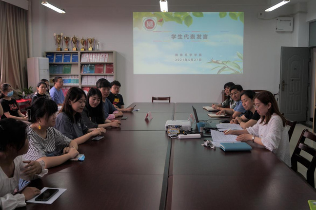 为更好地了解2021届毕业生的就业现状和困惑,提升学生就业技能,5月27日,教育科学学院举办就业工作师生座谈会。会议由学院副院长万谊主持,党总支书记吴月华、副书记吴兴、辅导员汪亮巧和符昱叶作为教师代表出席,2017级学生代表积极参与。