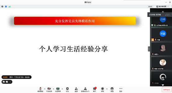 在提问交流环节,低年级学生党员提出一些在日常生活、学习以及未来考研就业等方面的困惑,张百啸同学给予耐心细致的回复,其他已就业的高年级学生党员也纷纷加入解惑队伍,现场气氛活跃。